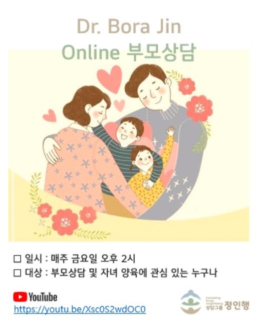 Dr. Bora Jin 소장님의 실시간 온라인 부모 상담을 진행합니다.